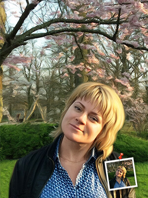 Компьютерная стилизация фото под живопись — это художественная обработка снимка, при которой обычная фотография превращается в изображение, похожее на картину, написанную маслом, акварелью или в другой живописной технике. За счёт специальных графических программ имитируются мазки кисти, фактура холста и мягкие переходы цвета, поэтому такой снимок выглядит как авторское произведение искусства и подходит для печати на холсте или в виде постера.