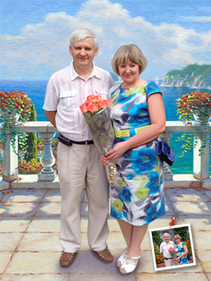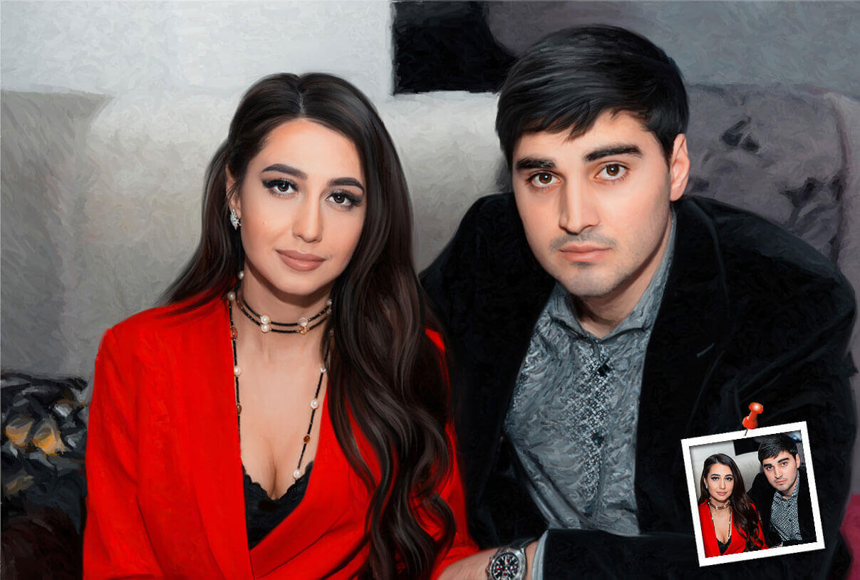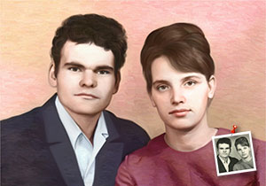 - Стилизация 2-го уровня. Графическая обработка 2 лиц на фотографии, или изображения со средним количеством деталей. Данный уровень стилизации также применяется если требуется совмещение людей на фото.
