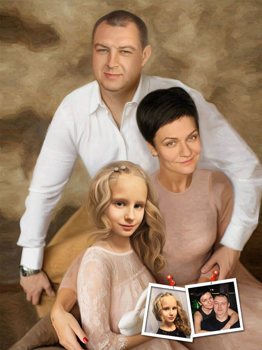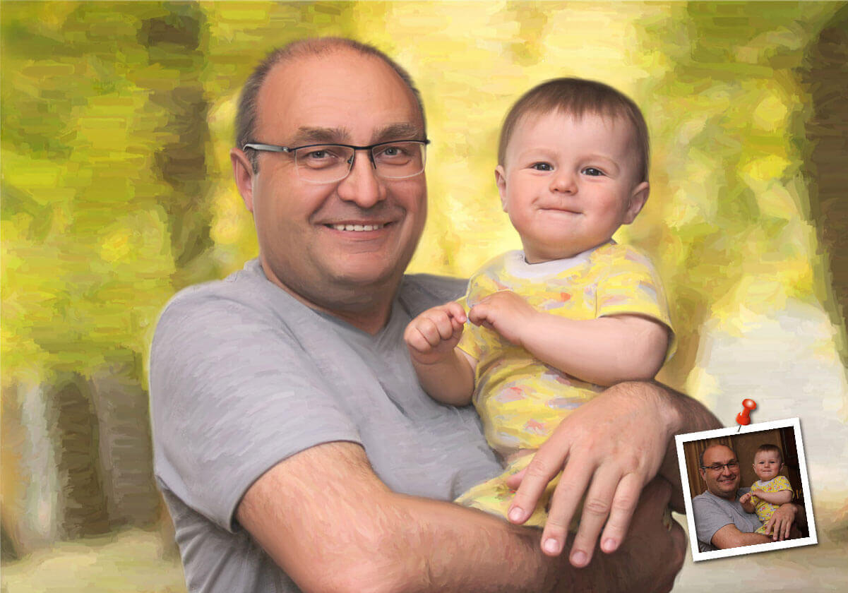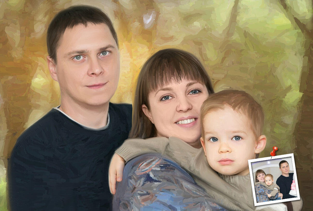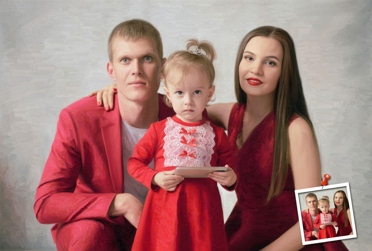 Лучше всего смотрятся портреты с хорошо видимыми чертами лица, эмоциональными выражениями и мягким освещением, а также семейные фото, свадебные кадры, детские снимки, романтические Love‑story. Под стилизацию картин подходят и пейзажи, архитектура, интерьеры — всё, что вы хотите превратить в декоративную работу для дома или в подарок.