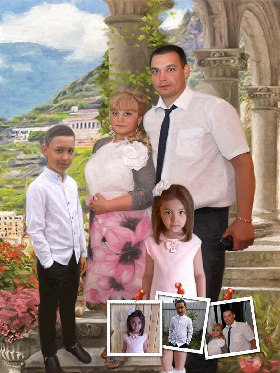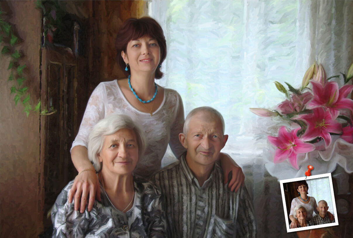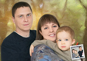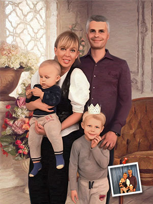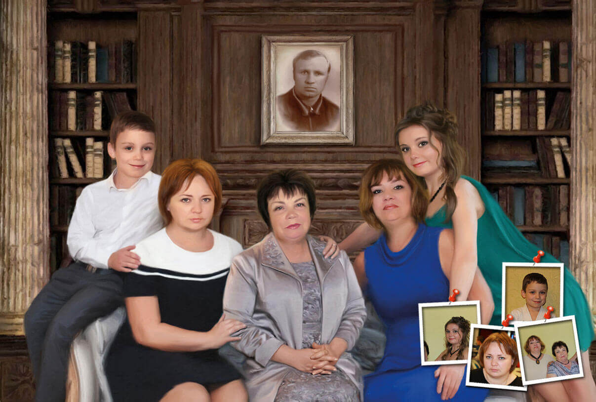 - Стилизация 4-го уровня — будет подходящим вариантом для портрета, где находятся 4 человека.