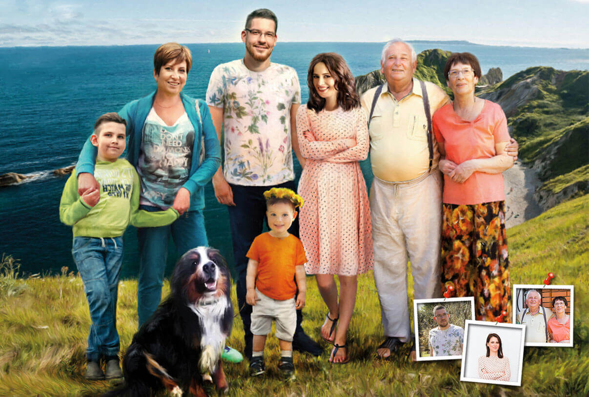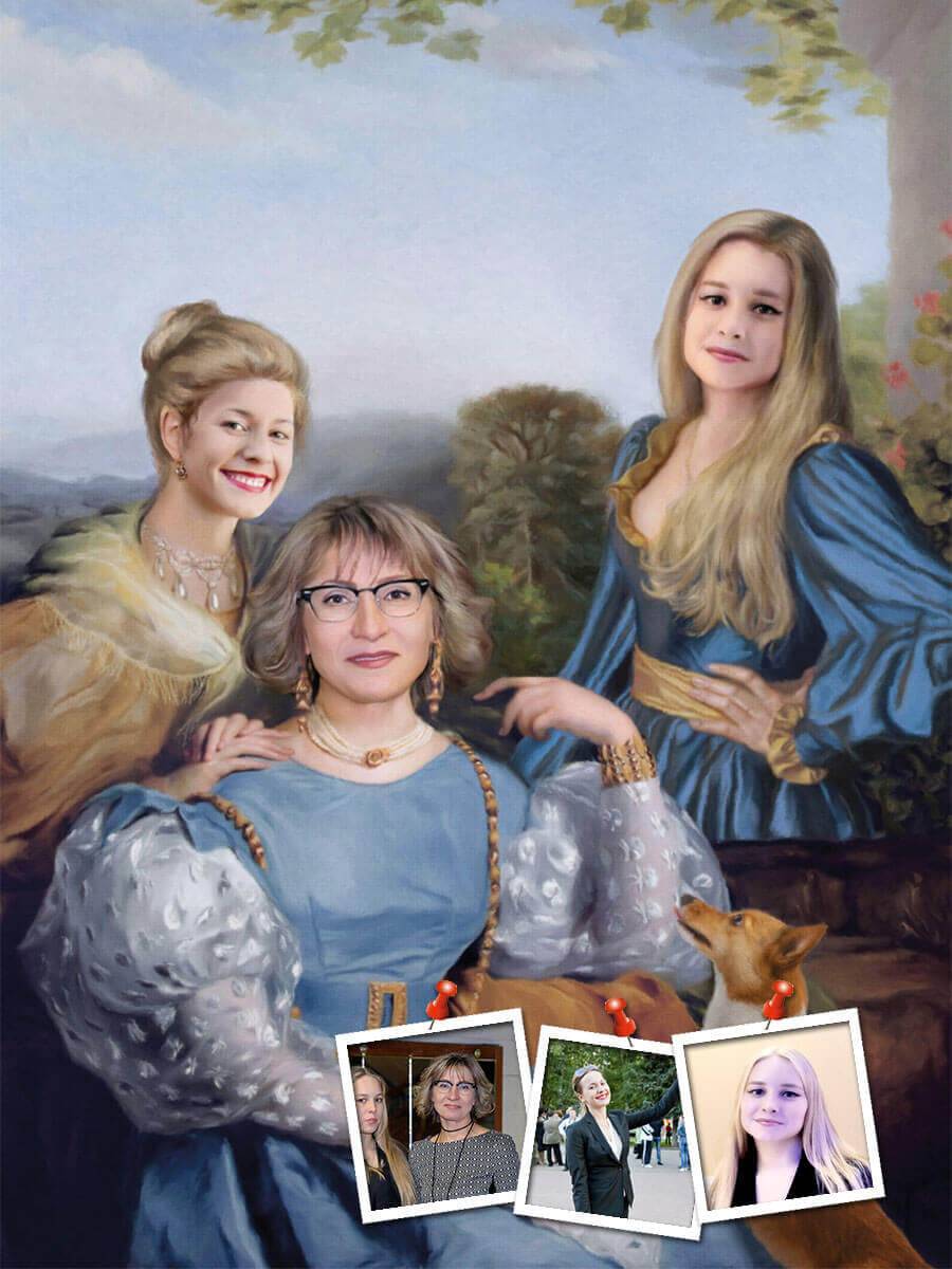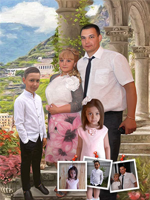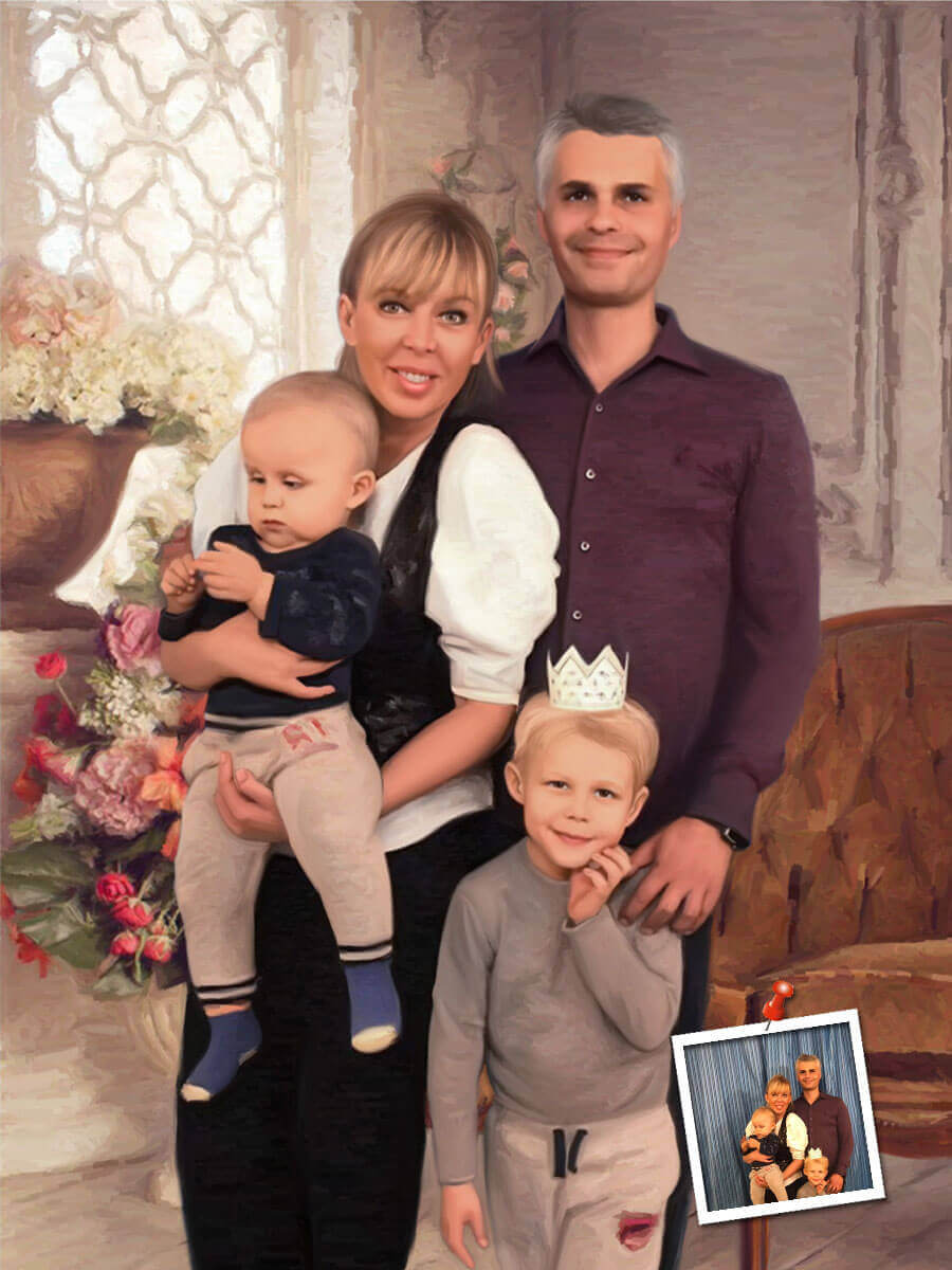 - Стилизация 4-го уровня — будет подходящим вариантом для портрета, где находятся 4 человека.