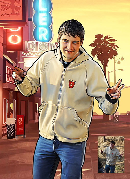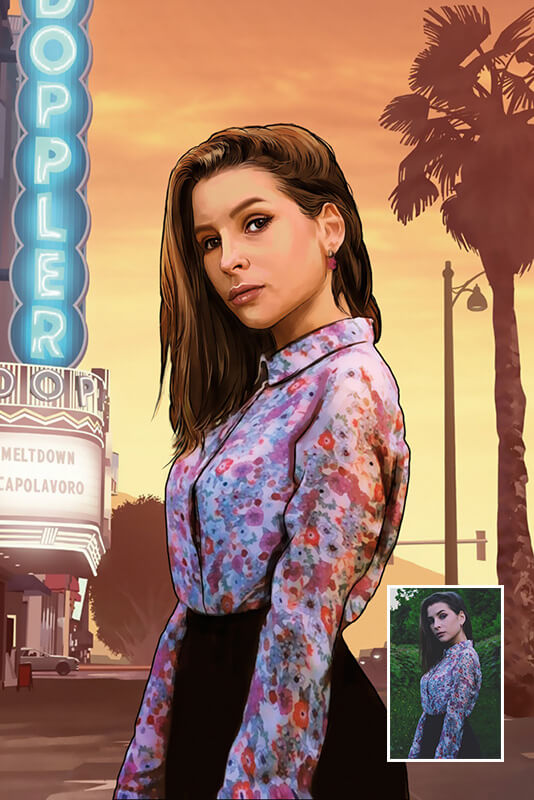 Современный, молодежный поп-арт портрет в стиле игры GTA. Данная игра уже много лет остается лидером на рынке. Мы изготовим арт-портрет по мотивам этой игры. На Ваш выбор будет несколько вариантов фонов. Наш самый молодежный поп-арт!