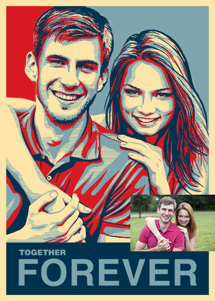 Портрет "Hope", созданный Шепардом Фейри внезапно стал одним из самых модных направлений десятилетия. Мы готовы предложить Вам изготовление в таком стиле. Мы также можем сделать надпись в стиле портрета по Вашим пожеланиям.