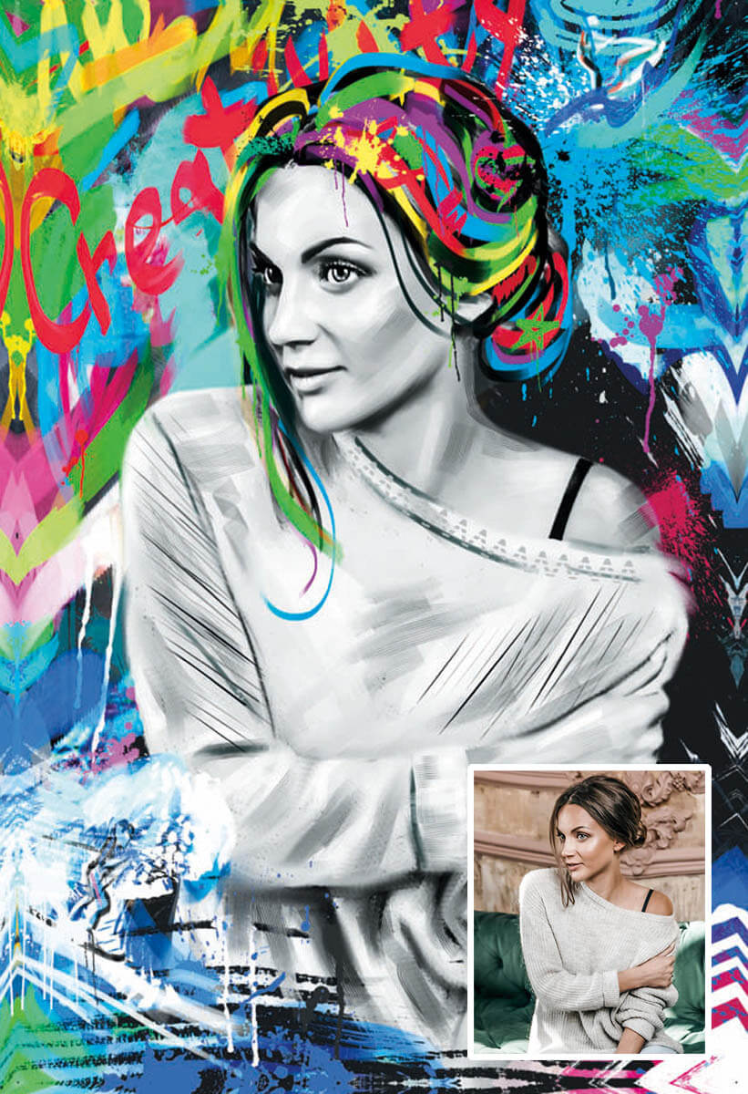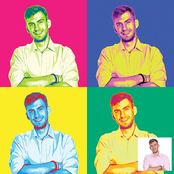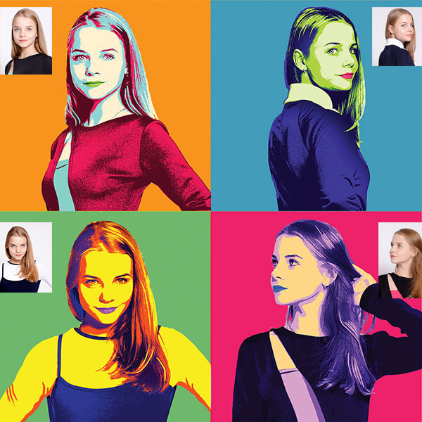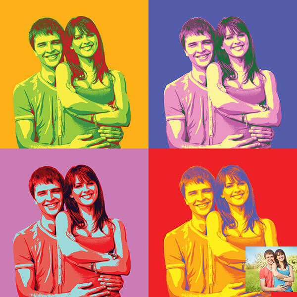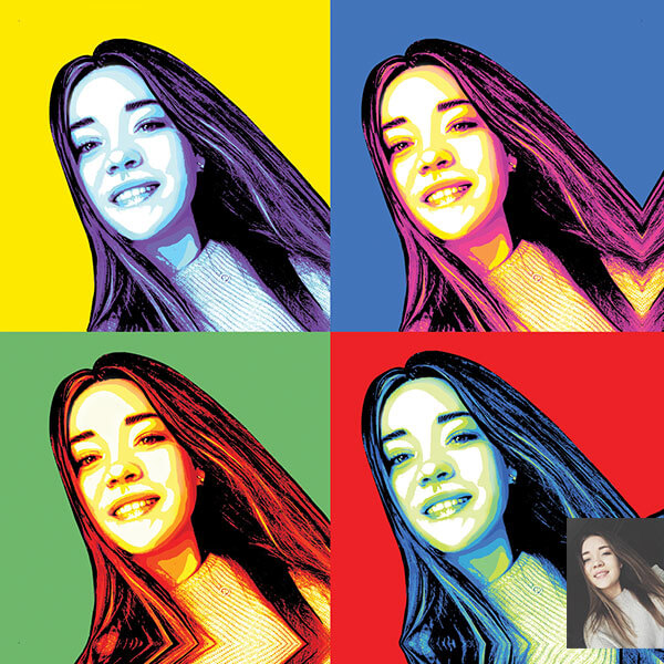 Графический поп-арт портрет на грани реальности и компьютерного мира, обычно выполняется в ярких, насыщенных тонах и радует ежегодно тысячи людей. В ХХI веке запечатлите себя в современном виде данного направления.