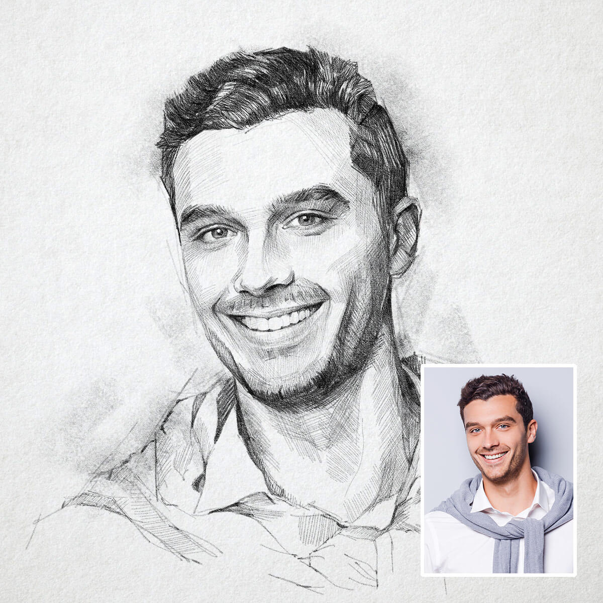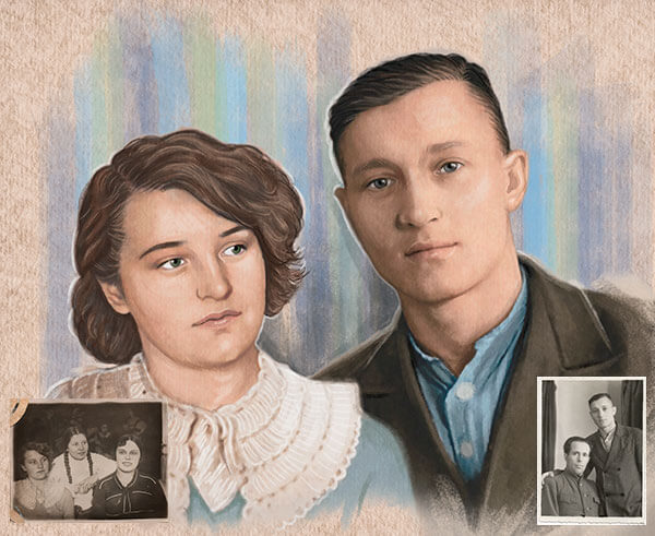 Стилизация под карандаш - отличная возможность создать макет на основе даже самой плохой по качеству фотографии. Художник-дизайнер на планшете рисует портрет на основе предоставленной фотографии. Далее макет можно перенести на холст любого размера. В случае заказа данной услуги Вам не нужно будет платить дополнительно за оцветнение старой фотографии или отрисовку фотографии плохого качества!