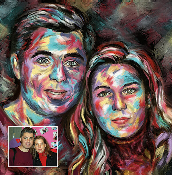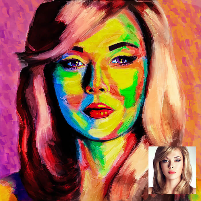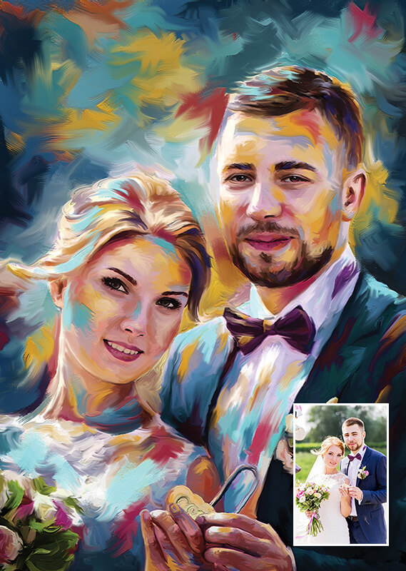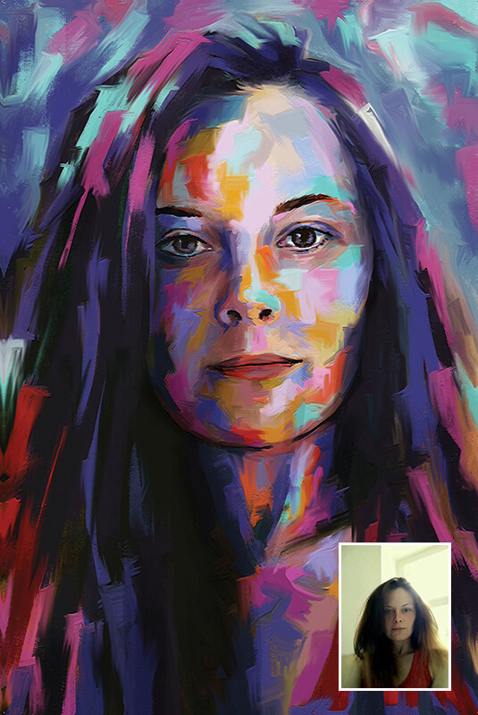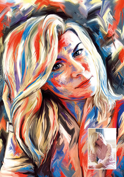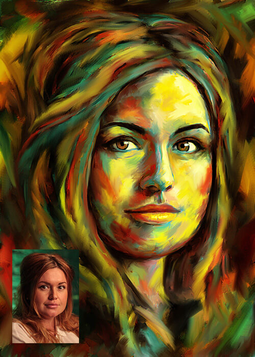 Такой авангардный дизайн-подход считается мастихиновым экспрессионизмом. Такой стиль в портретном искусстве достаточно редок, но абсолютно точно - ярок и оригинален. Если Вы готовы уйти от фотографичности, довериться творческому полету наших дизайнеров, то данный вид портрета именно для Вас. Готовьтесь собрать возгласы "WOW", ведь это самый-самый арт. Портрет может быть выполнен как в спокойных тонах, так и в ярких, ослепительных тонах. Печать на холсте или портрет маслом, в исполнении художника? Решать Вам - и в одном и в другом исполнении этот вид портрета не оставит никого равнодушным.