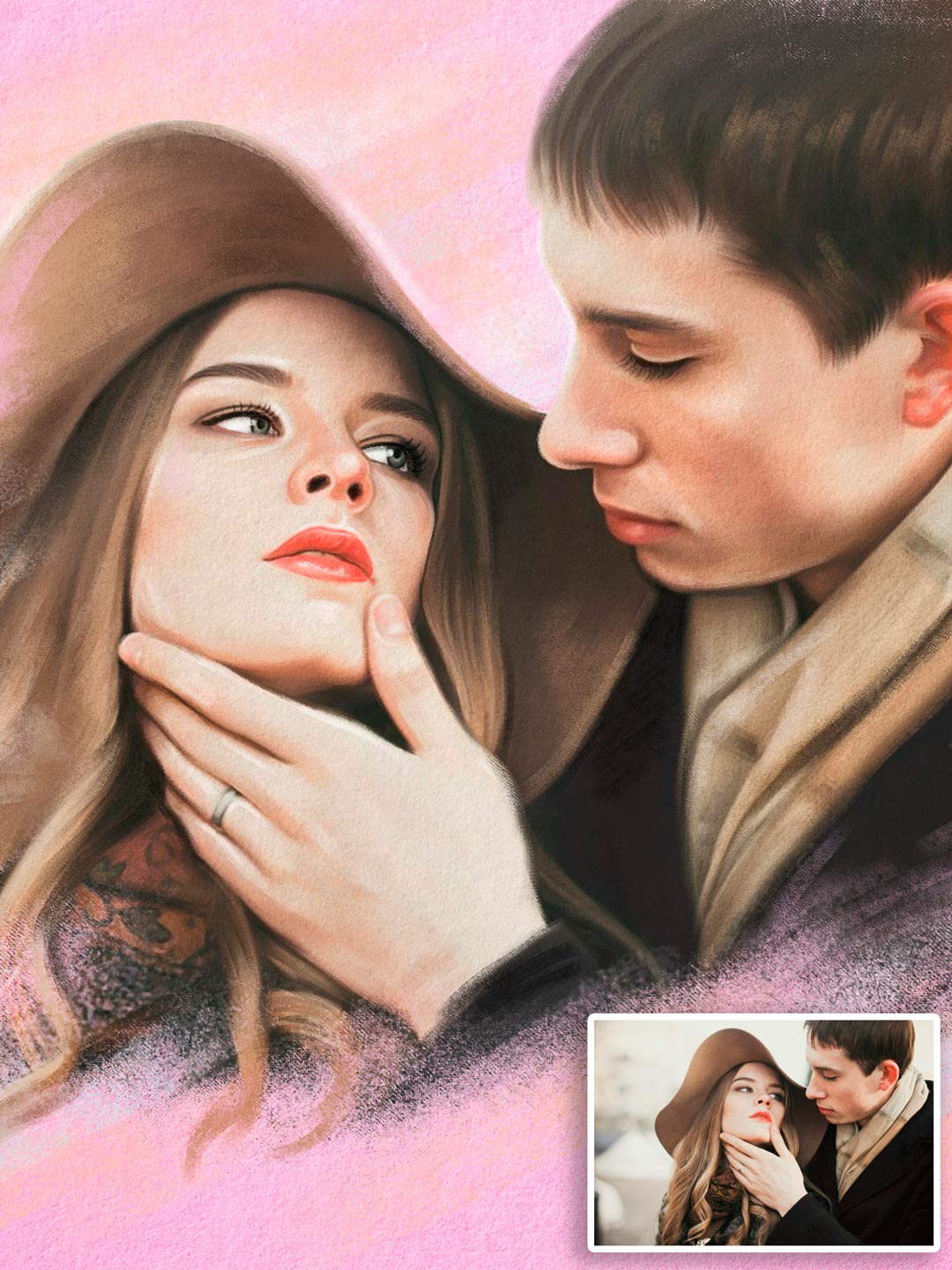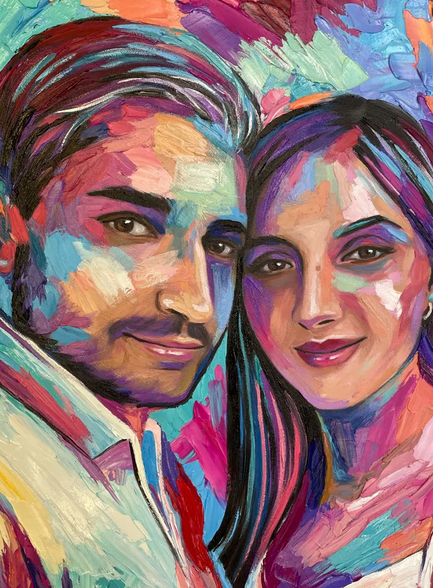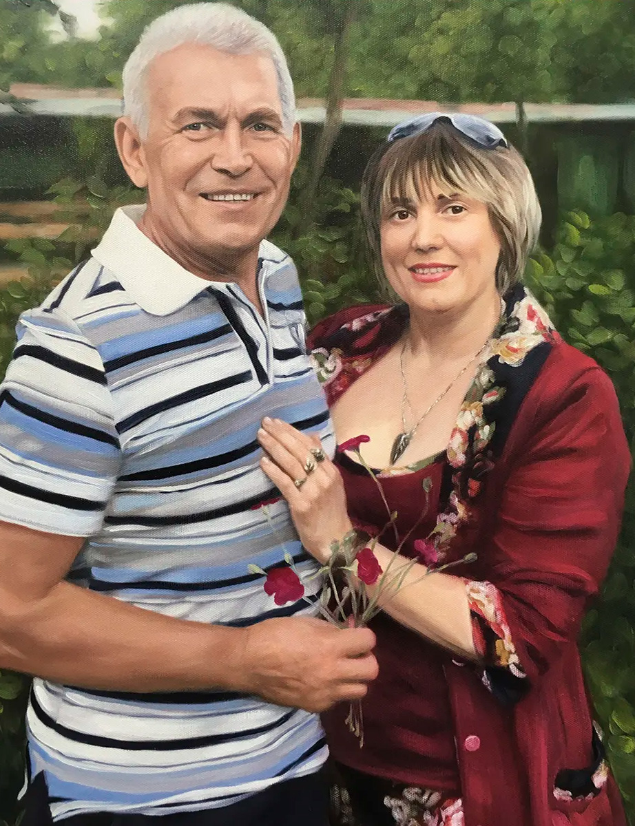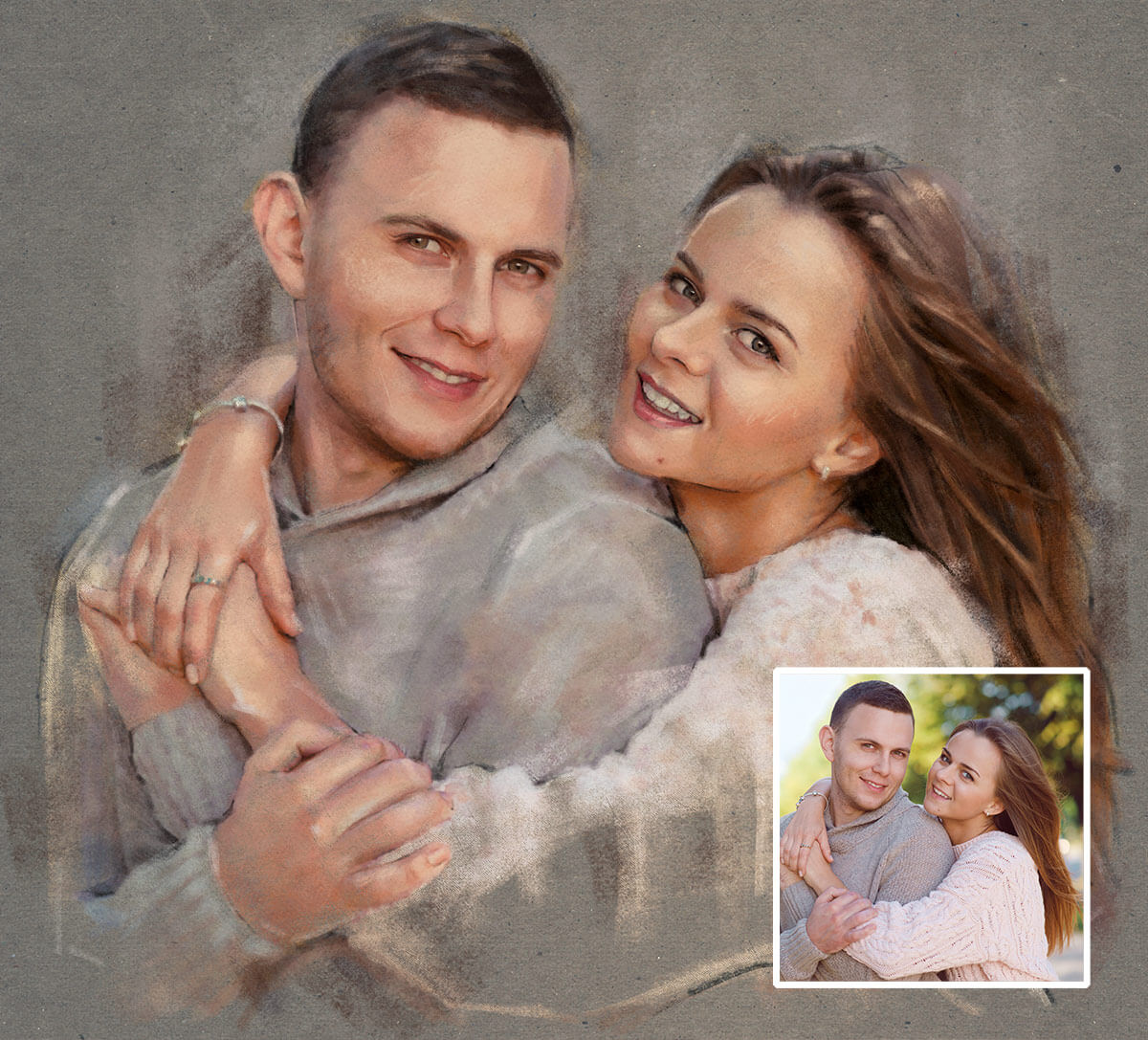 Парный портрет маслом по фотографии на холсте создается вручную художниками в различных техниках и с разным уровнем прорисовки. 100% портретное сходство!