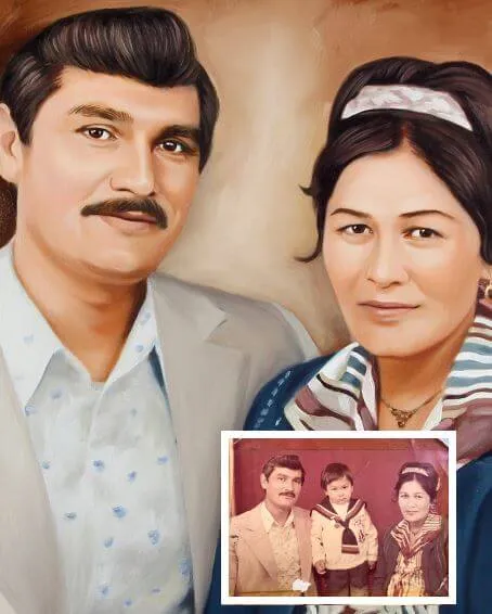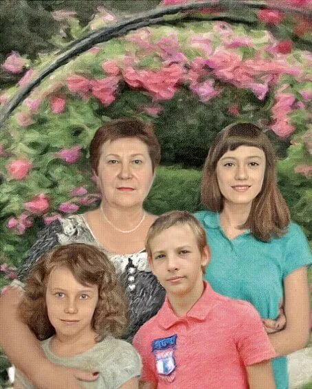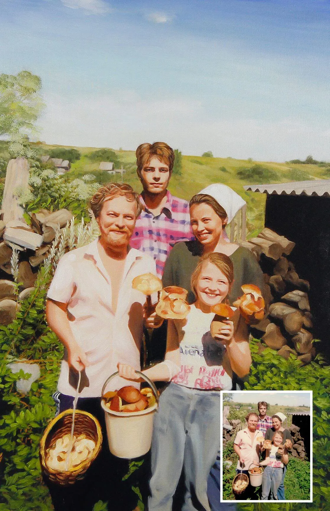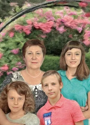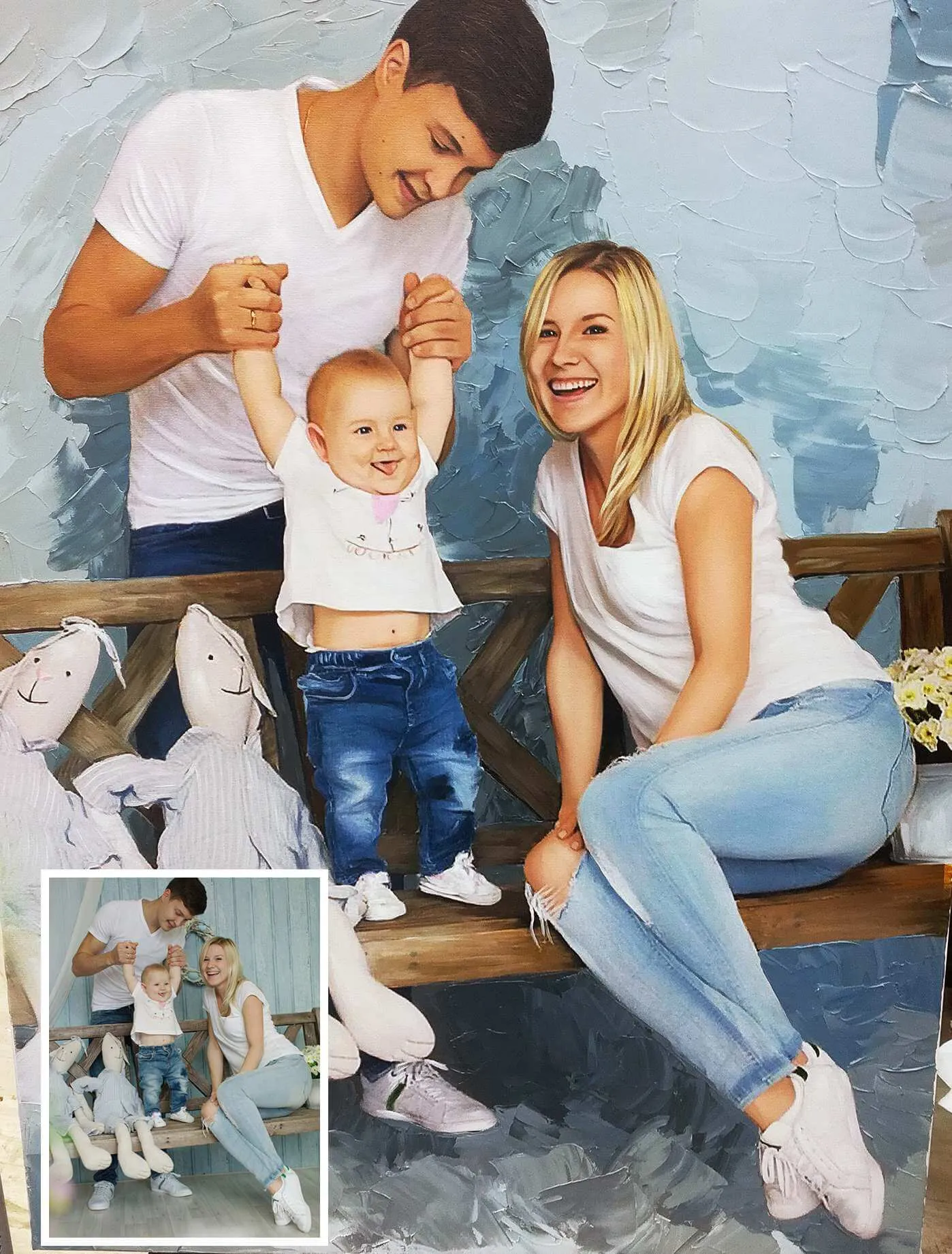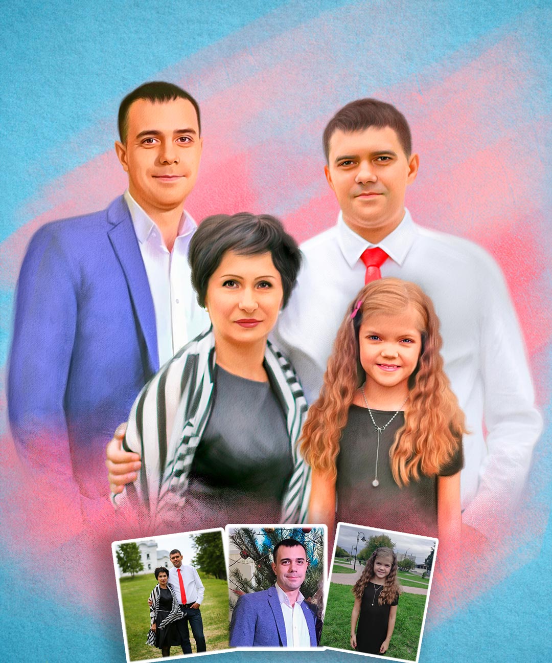 Семейный портрет маслом по фотографии на холсте создается вручную художниками в различных техниках и с разным уровнем прорисовки. 100% портретное сходство!