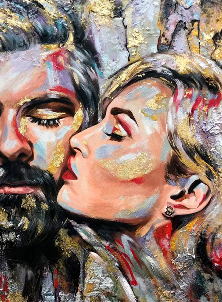 Диалог двух вселенных. Взгляды, полные понимания; жесты, говорящие без слов; фон, перекликающийся с общими мечтами. Это может быть страстный танец или тихий вечер у камина — неважно. Важно, как краски передают ту незримую связь, что превращает «я» и «ты» в «мы». Такой портрет — признание в том, что союз двух сердец стоит запечатлеть на века.