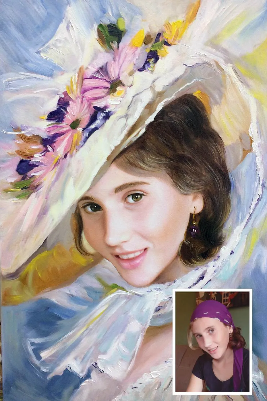 Портрет маслом по фотографии на холсте создается вручную художниками в различных техниках и с разным уровнем прорисовки. 100% портретное сходство!