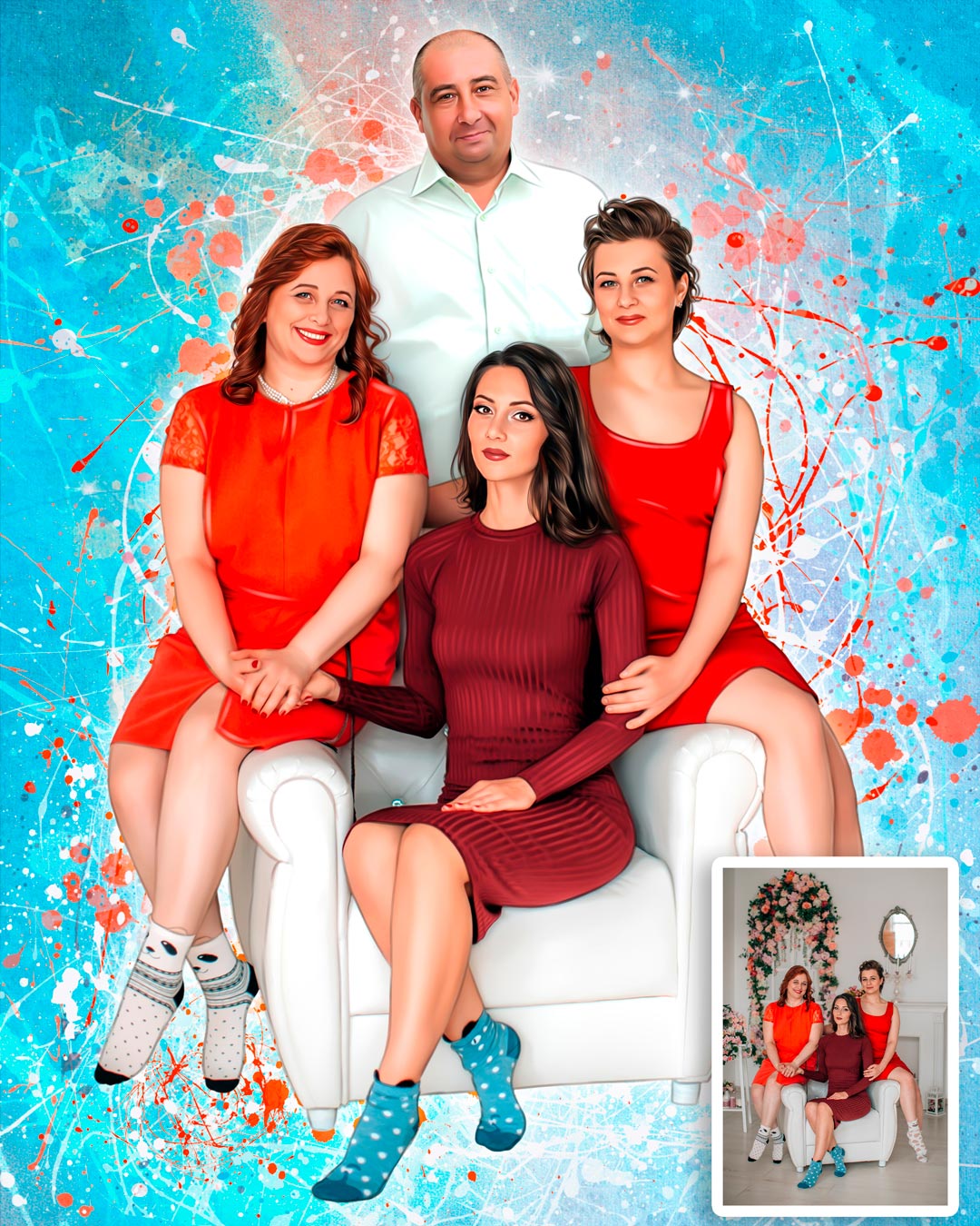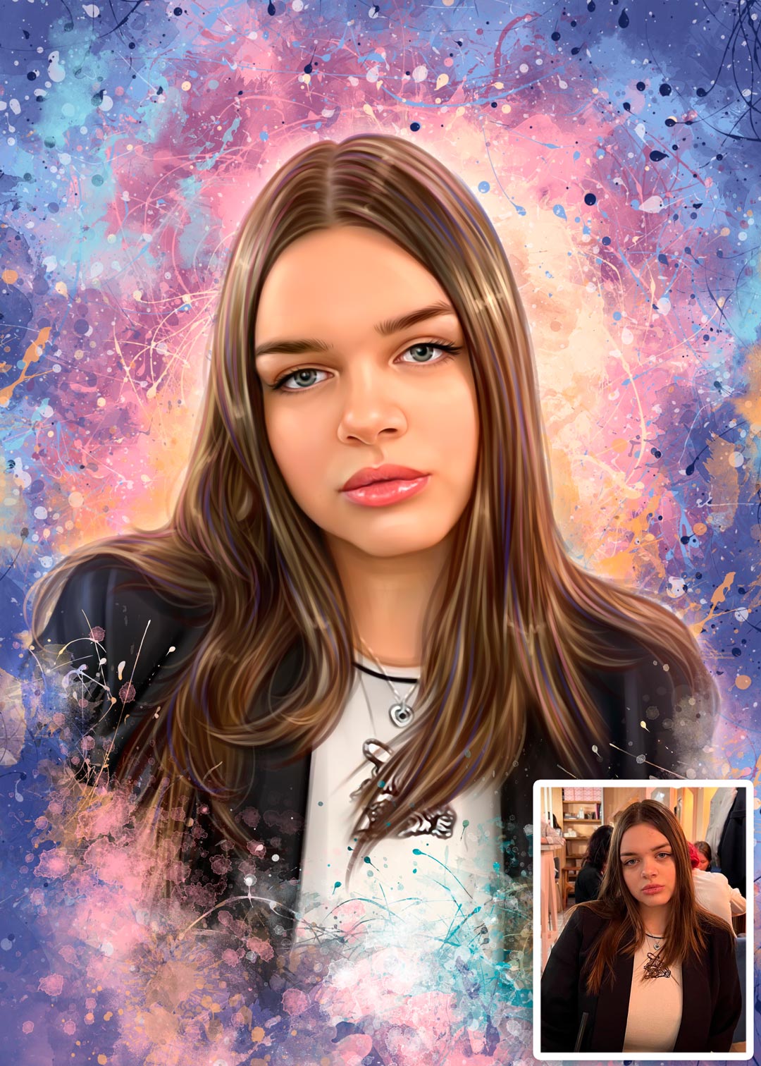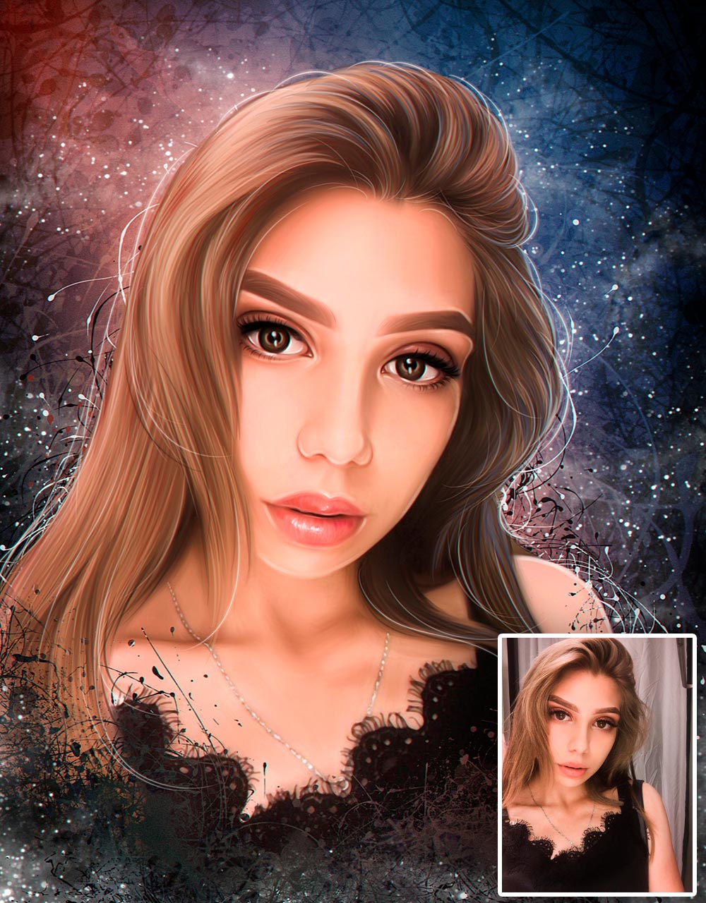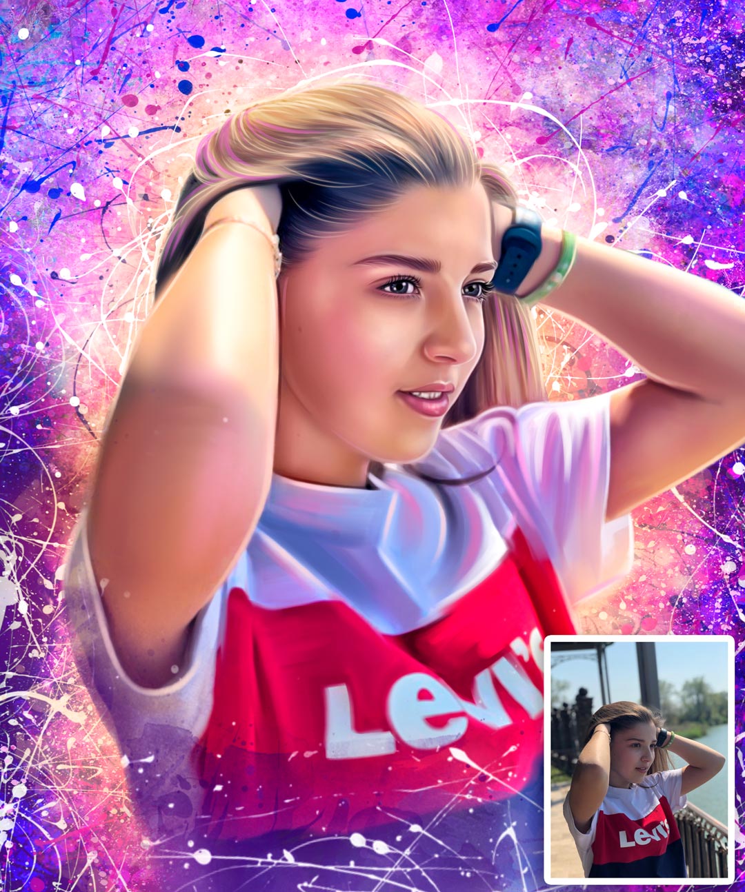 | Арт-портреты Сплэш *Мы предлагаем более 10 арт-стилей на любой вкус. Цена зависит от выбора стиля портрета, количества лиц на портрете и варианта исполнения. |
