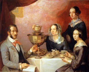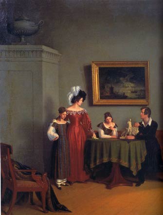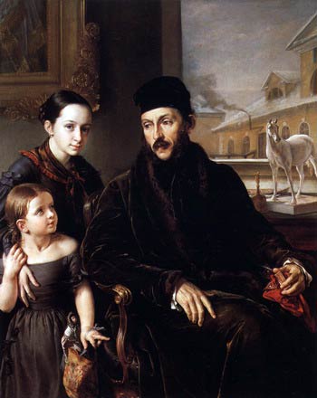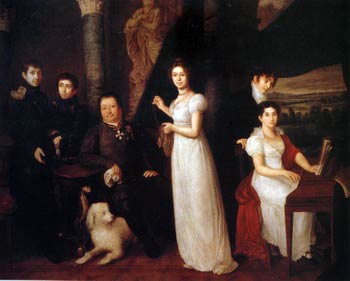 Василий Тропинин - Портрет Дмитрия Петровича Воейкова с дочерью Варварой Дмитриевной Воейковой и англичанкой мисс Сорок