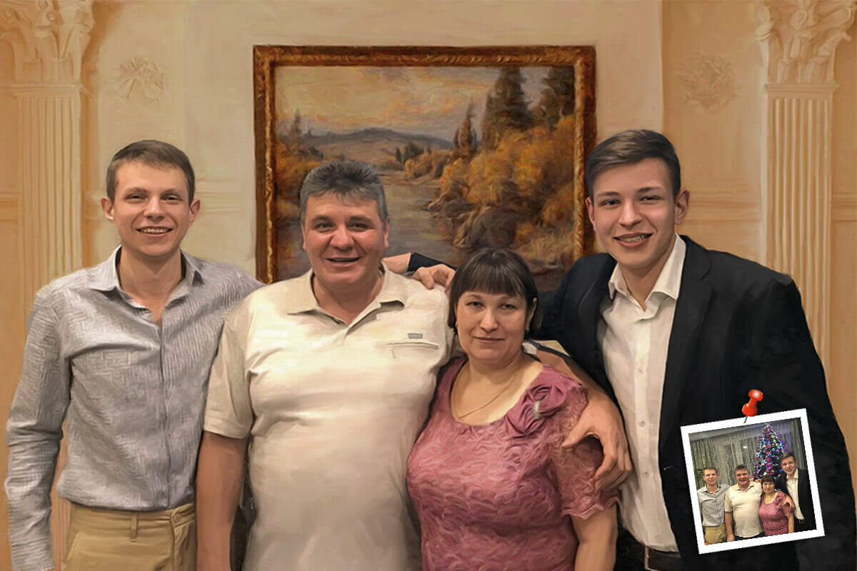 Если Вам нравится фотография, но не нравится фон на ней — обратитесь к нам. Наши дизайнеры согласно Вашим пожеланиям выполнят услугу "Замена фона". Вы можете выбрать любую тематику для нового фона - от спокойных однотонных и портретных, до ярких и насыщенных. Порядок оказания услуги следующий.. Дизайнер подготовит несколько вариантов черновых эскизов, которые затем будут отправлены Вам по электронной почте. После согласования понравившегося эскиза вы уже определяетесь со способом изготовления. В зависимости от ваших предпочтений и ценовых ожиданий — конечная работа может быть напечатана на холсте, или написана маслом нашими художниками.